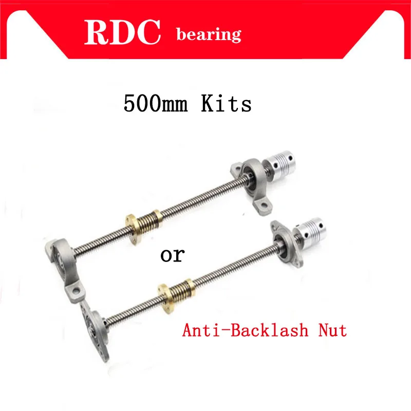 شراءمعلومات اضافية T8 الرصاص المسمار شبه منحرف 500 مللي متر 8 مللي متر + مكافحة رد فعل عنيف الجوز + KP08 أو KFL08 تحمل قوس + مرنة اقتران ل 3D طابعة و CNC